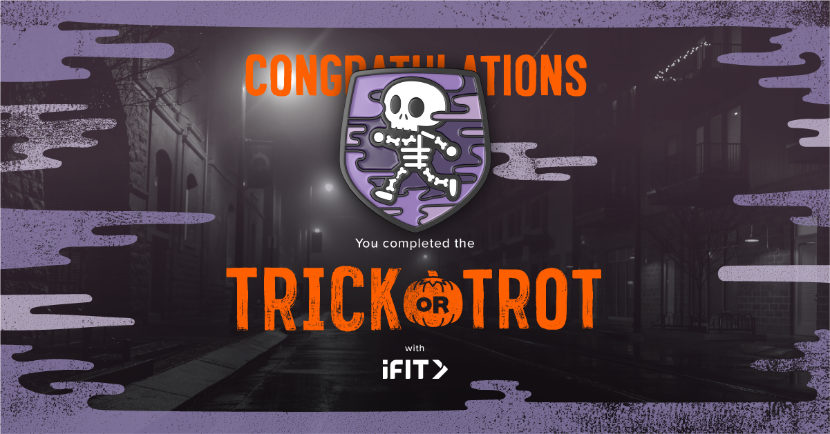 As a 3K fun run, you set the pace—walk, jog, or run with Ashley and the iFIT Community! After finishing the Trick or Trot 3K, you’ll receive your digital reward in your Trophy Case.