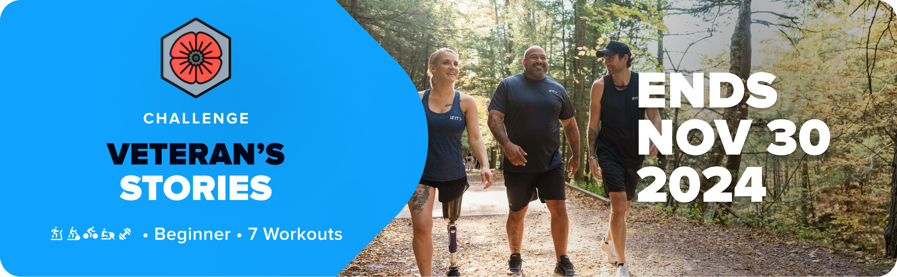 This Challenge honors Veterans, sheds light on their triumphs and struggles, and will inspire you to reflect on the true meaning of service and sacrifice. It is available on all equipment types to give each of our members the opportunity to hear these incredible stories.