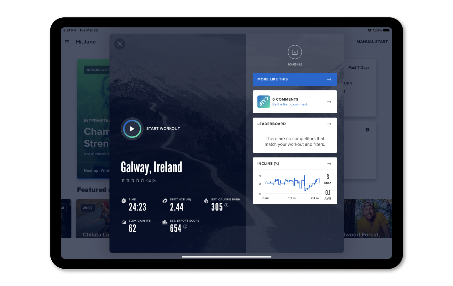 You’ve now created your own map-based workout! Get going by tapping Start Workout to begin the workout you just made. Rather do your workout later instead? Press Schedule to schedule a date on your calendar for when you’d like to work out. Keep track of this workout and those you create in the future by pressing Favorite to save them to your list of favorites in iFIT. Work out in places you love or have never been to and earn iFIT Milestones along the way!