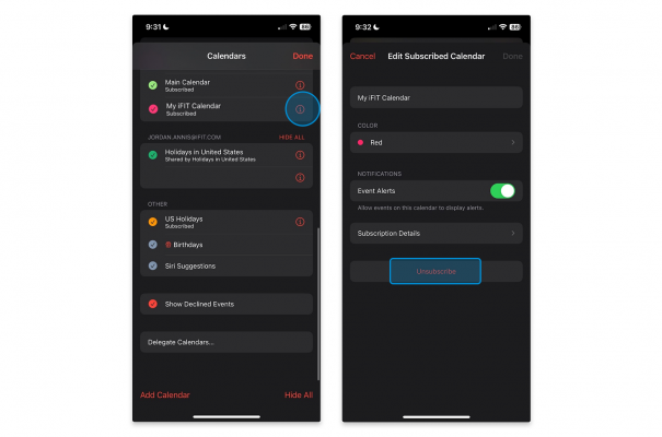 If you ever want to stop syncing your workouts, removing your iFIT Calendar is just as easy.