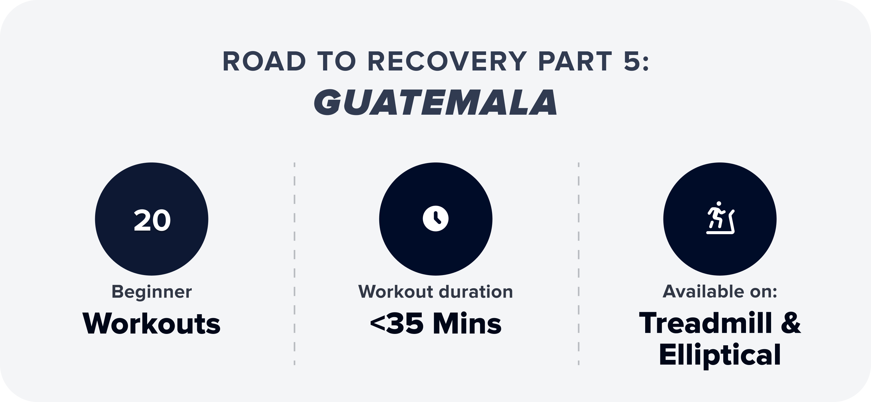 In Road to Recovery Part 5: Guatemala, Rivs takes you through 20 invigorating walks, introducing gentle inclines and declines. Each walk is under 35 minutes, making it perfect for anyone, regardless of fitness level. Whether you’re stepping back into fitness, overcoming an injury, or building your running foundation, these workouts are designed with you in mind.